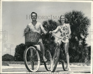 1939 Press Photo Mr & Mrs Abbott James on Boardwalk at Sea Island,Georgia