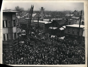 1940 Press Photo A crowd watches a hook & ladder truck at Fire Dept deployment