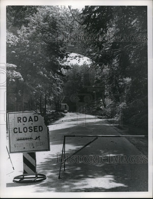 Press Photo Helliar Bridge road closed signs in Cleveland area