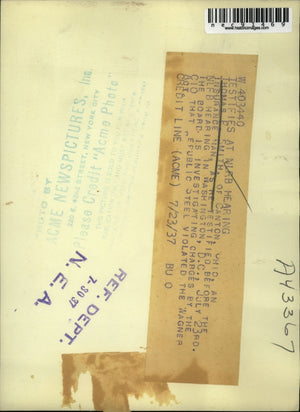 1937 Press Photo Thomas P. Smith Testifies at NLFB Hearing in Washington, D.C.