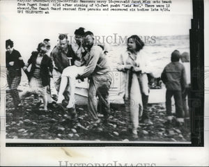1959 Press Photo Rescuers carry Janet Wick,16 on beach at Puget Sound