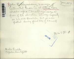 1953 Press Photo Wayne Wyssmann Manager of Centenial Grain Co Attica Kansas