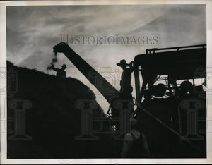 1939 Press Photo Illinois Wheat Farm Harvest Threshing