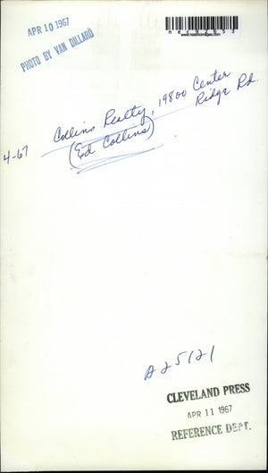 1967 Press Photo Ed Collins poses at the Collins realty signage post