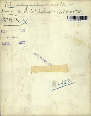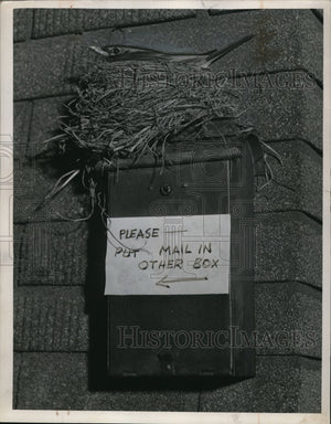 1945 Press Photo Robin making residence on mailbox at ER Farland's home