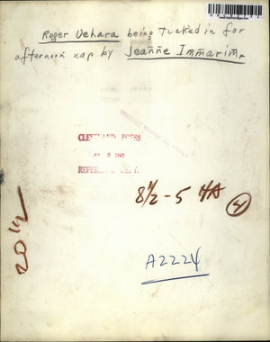 1945 Press Photo Roger Vehara being tucked in for nap by Jeanne Immarim.