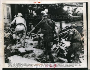 1956 Press Photo Rescuers in Santos, Brazil after a landslide