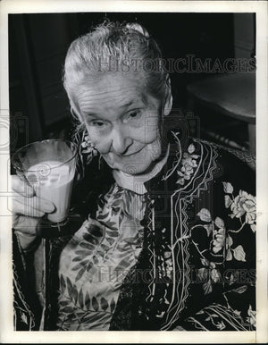 1941 Press Photo Mrs. James toasts to the next 100 years with a glass of milk