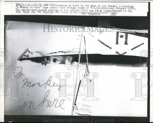 1961 Press Photo Simian Monkey Peers Out of Shipping Crate on TWA Plane
