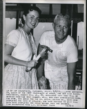 1957 Press Photo Alhambra Calif Anne Mossberg Queen of Tournament of Roses