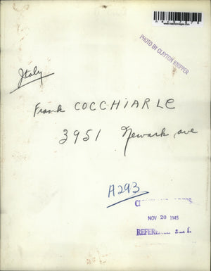 1945 Press Photo Frank Cocchiarle of Newark Ave - nec97878