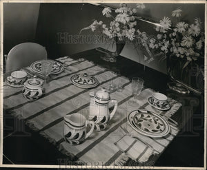 1937 Press Photo Luncheon table by Hampacher Schlemmer with Cornacopia vases