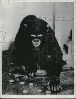 1934 Press Photo chimp selects coin so she can avoid photographer