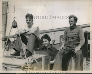 1938 Press Photo La Calif Sailboat Ad Astra, Capt Wm Zaleski, bride & her son