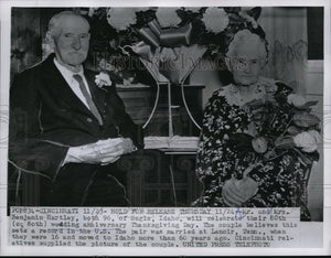 1955 Press Photo Mr. & Mrs. B. Hartley will celebrate their 80th anniversary