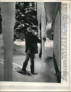 1965 Press Photo Bethany Chernecki checking out the icicles hanging