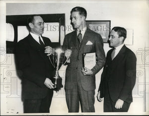 1935 Press Photo Receiving award from Dr. E. Leroy is Kenneth Kashagen