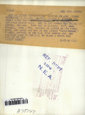 They met in Octoerb 1942, when Kissell, then a PFC, arrived in London on his first pass, and asked his way in the London Underground.
