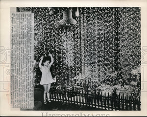 1949 Press Photo Bonnie Jo Kearns with Christmas decorations in her living room
