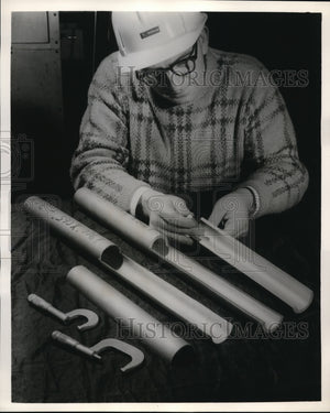 1963 Press Photo Tom Gorman inspects steel pipe, Watervliet Works