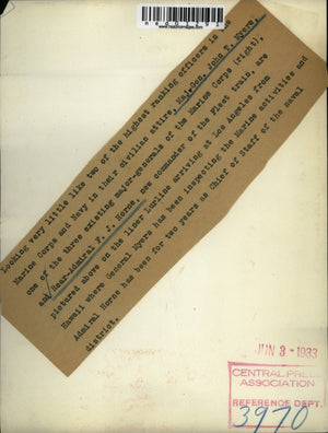 1933 Press Photo Maj. Gen John T Myers Rear- Admiral F.J Horne - ned01291