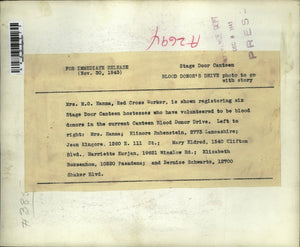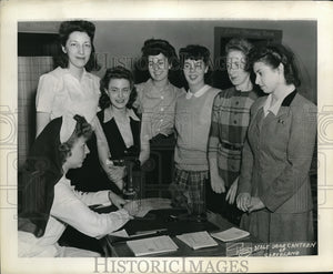 1943 Press Photo Red cross worker, Mrs. Hanna with six girls to be blood donors