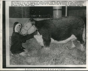 1958 Press Photo Chicago Roberta Ann Sibbit & Hereford steer at Livestock expo