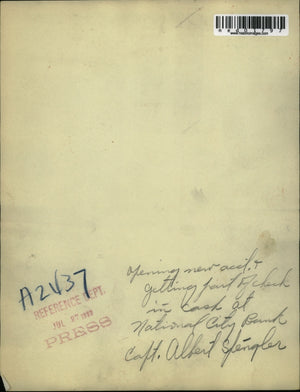 1937 Press Photo National City Bank opens, Capt Albert Spengler & customer