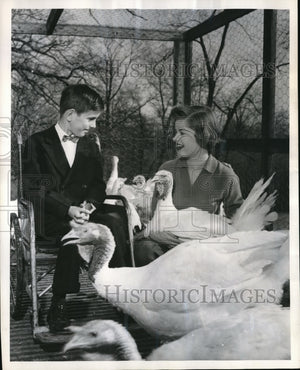 1955 Press Photo Richard Healey, Kathy Iverson & turkeys