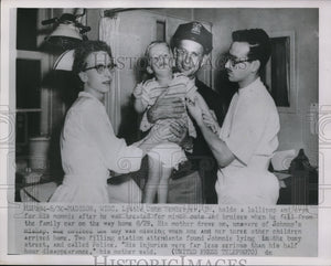 1952 Press Photo Madison Wis J Hemberrey checked by doc after falling out of car