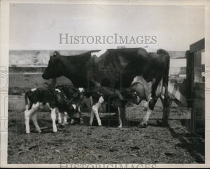 1937 Press Photo Triplet calves nurse from mother at Huntington Beach Calif
