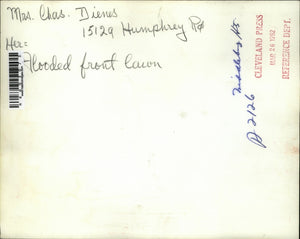 1962 Press Photo Mrs. Charles Dienes points at her flooded front lawn.