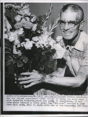 1954 Press Photo Allentown Pa Bill Beitler & flowers from his own funeral