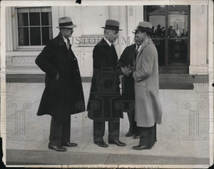 1933 Press Photo Sec. of State Hull, leaving the White House talking to reporter