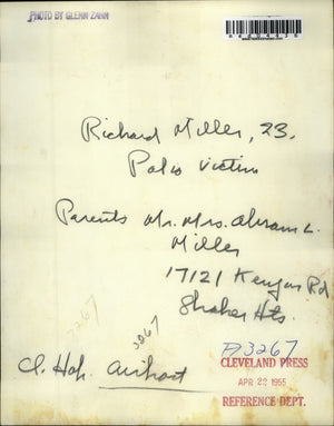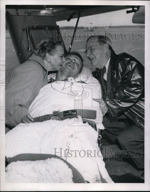 1955 Press Photo Richard Miller, & parents polio victim in ambulance