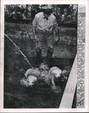 1950 Press Photo Twin polar bears, Jo-Jo and Jerry, do not like to swim.