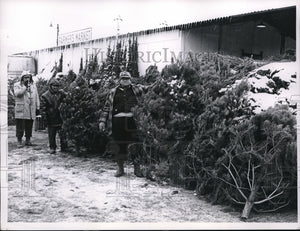 1953 Media Photo Louis Berkowitz selling Xmas trees in Cleveland Ohio