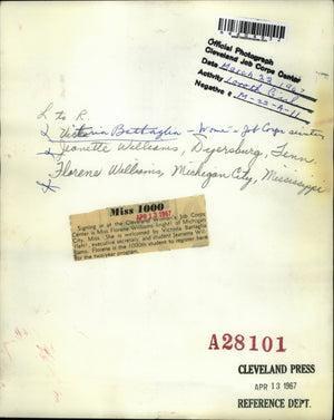 1967 Media Photo Ms. Williams signing in the Cleveland Women's Job Corps center