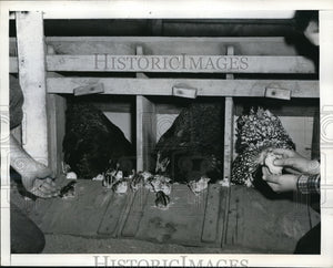 1945 Press Photo The chicks have been hatched by their kind mother hen