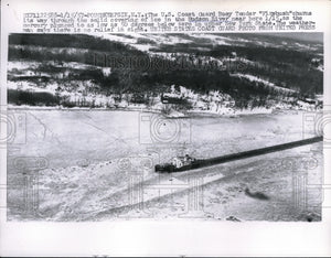 1957 Press Photo US Coast Guard Buoy Tender Firebush on Ice in Hudson River