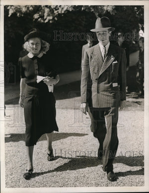 1938 Press Photo Alfred Gwynne Vanderbilt and Elsie Sturgess at Belmont Park