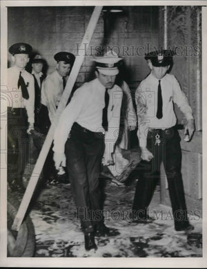 1940 Press Photo Cinncinati rescue workers & victims of a fire