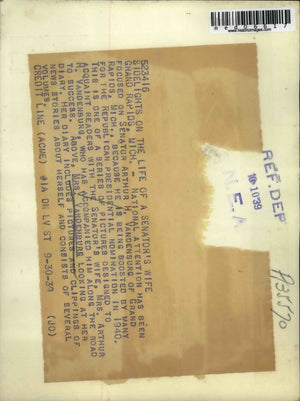 Arthur Vandenburg of Michigan sidelights on the life of a Senator's Wife.