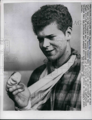 1959 Press Photo Pianist Van Cliburn had minor finger operation at the hospital