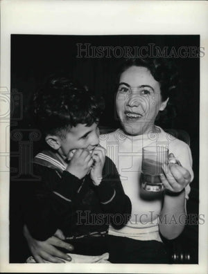 1938 Press Photo Cleveland Ohio Mother has cup of coffee and son