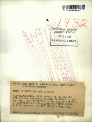 a bolgna sandwich in the relief sit-down at Cleveland City Hall provided by Strike Committee