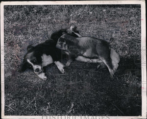 1954 Press Photo Duroc Pig Nursing On Cocker-Shepherd Dog