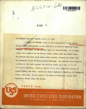 1958 Media Photo UN world HQ & derrick crane at construction site