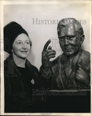1945 Press Photo Dr Suzanne Stevenson on portrait bust of late Wendell Willkie