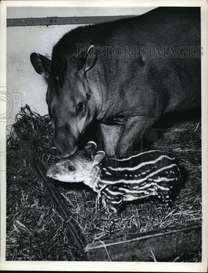 1964 Press Photo Hamburg West Germany Tapir & her baby at the zoo - ned08265
